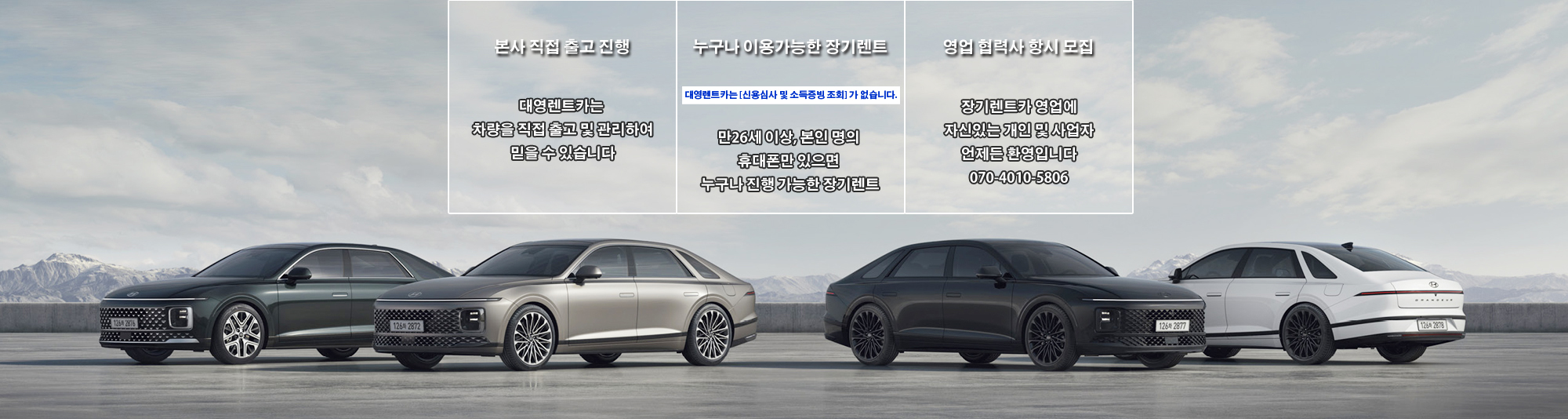 (주)대영렌트카 : 설립일 2004년 11일 사업자번호 215-86-53006 대표이사:윤대영 주사무소:경기 고양시 덕양구 권율대로 672, 403호