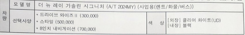 ▶ 차종 및 등급 : 기아 자동차 더 뉴 레이_시그니처 (2024)