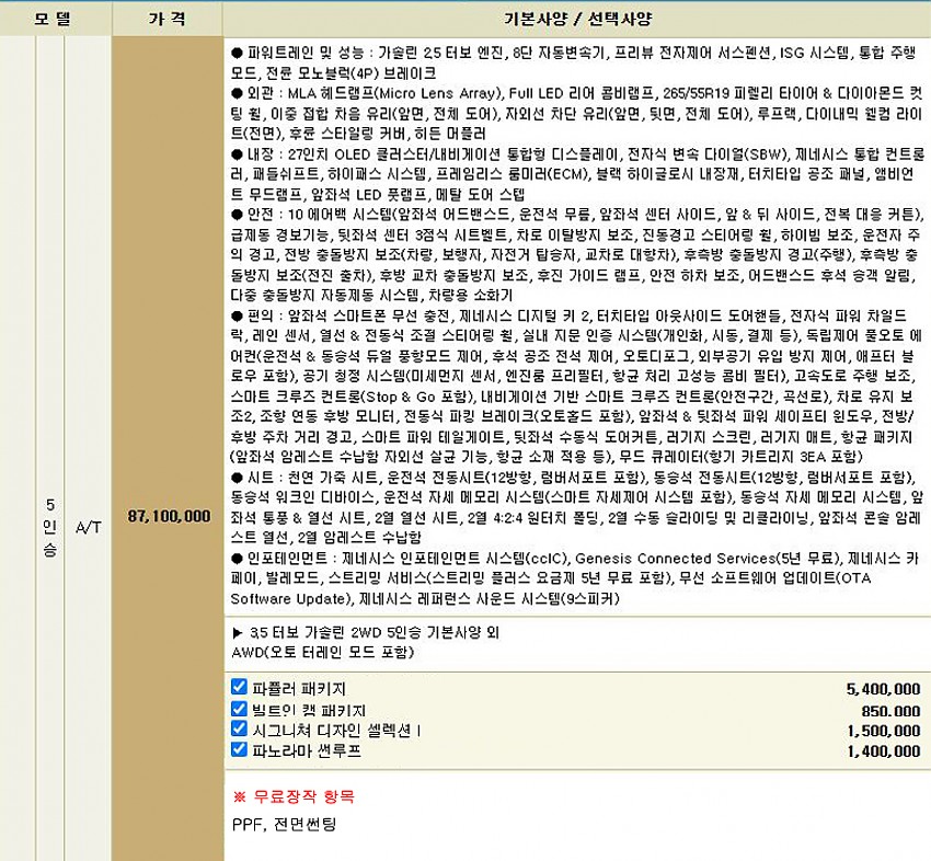 ※무상옵션 및 기본 장착 항목