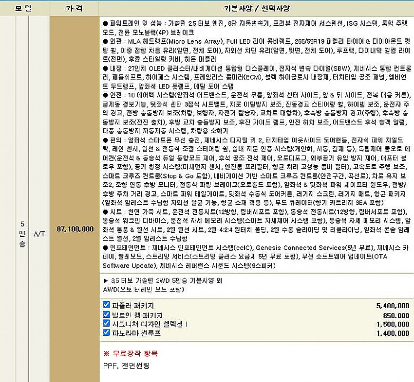 ※무상옵션 및 기본 장착 항목
