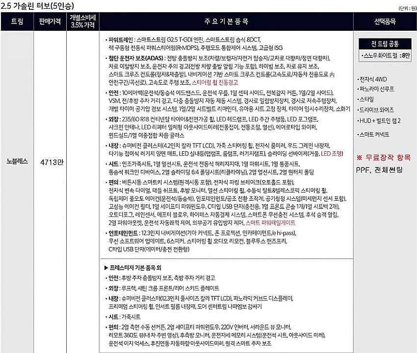 ▶ 차종 및 등급 : 더 뉴 쏘렌토 가솔린 2.5_4WD_노블레스_5인승_25MY