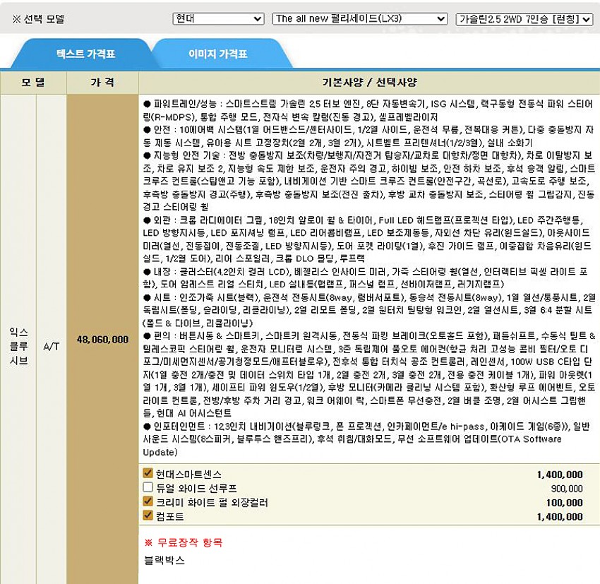 ▶ 차종 및 등급 : 팰리세이드_2.5T_7인승_2WD_익스클루시브
