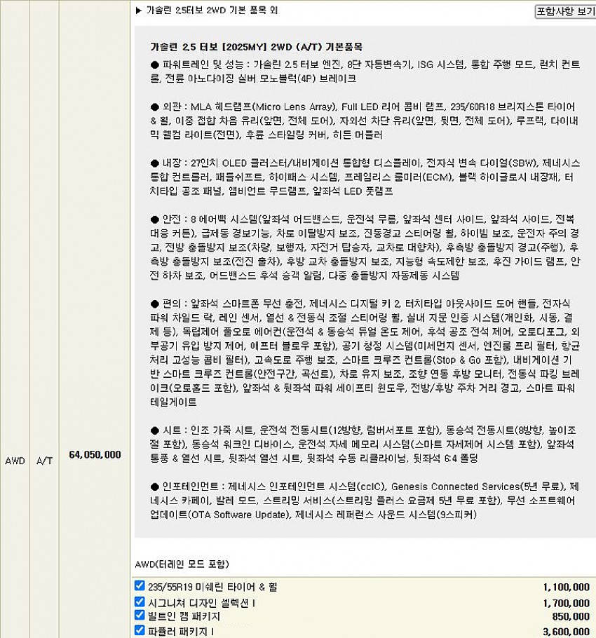 ▶ 차종 및 등급 : GV70_가솔린_2.5T_AWD_25MY