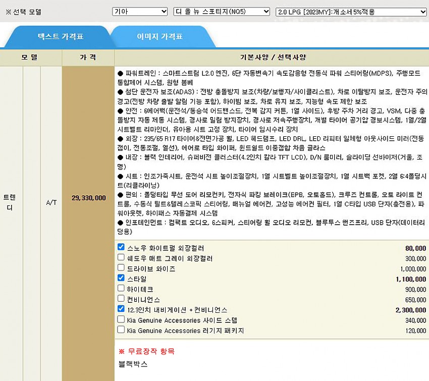 ▶ 차종 및 등급 : 디 올 뉴 스포티지 2.0 LPG_트렌디