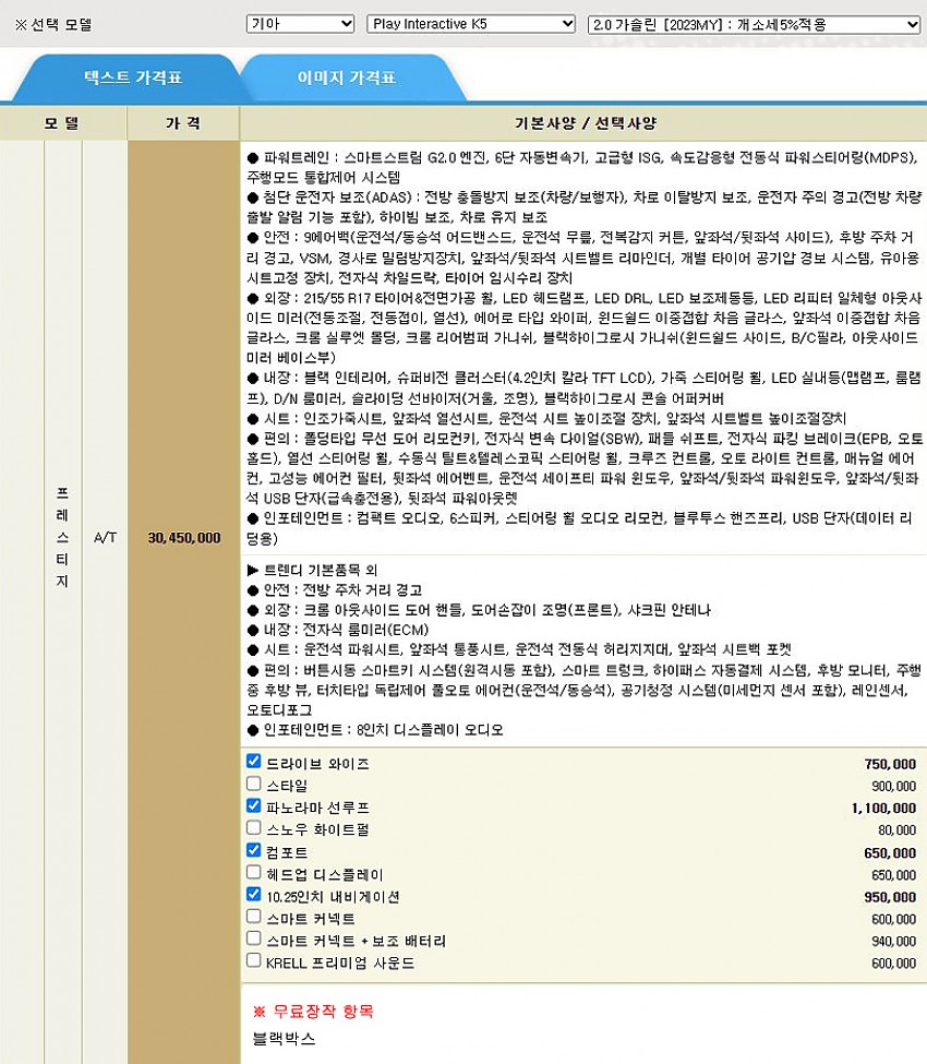 드라이브와이즈 + 파노라마썬루프 등 / 블랙박스 (아래 옵션사항 참조)