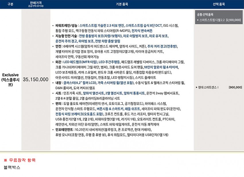 ▶ 차종 및 등급 : 더뉴 싼타페 스마트스트림 디젤 2.2 2WD 익스클루시브 5인승