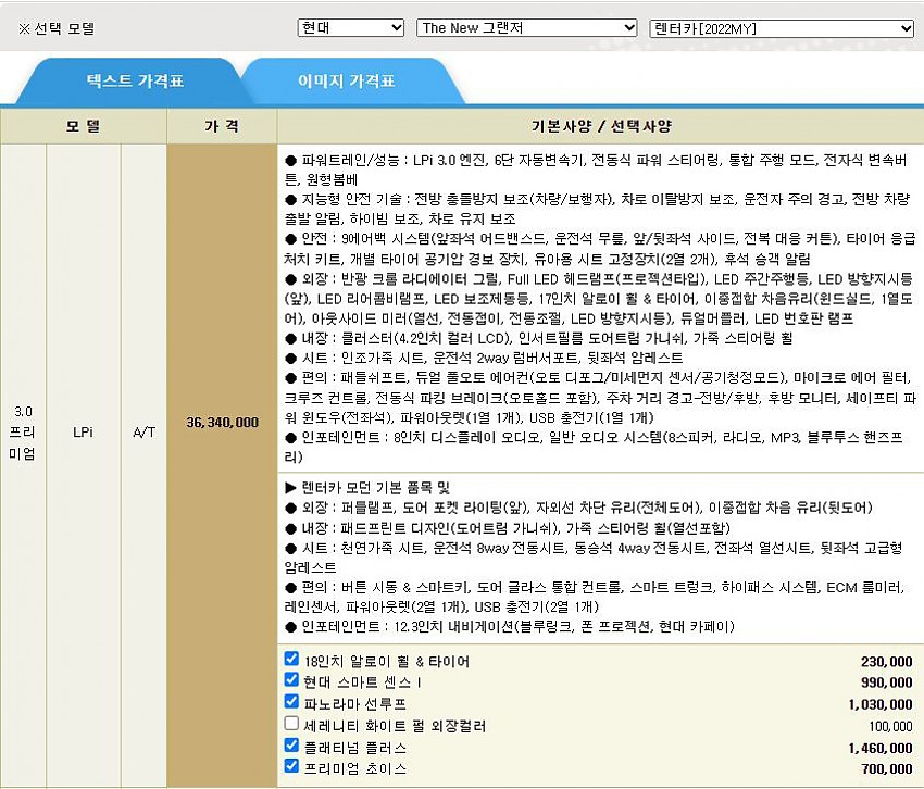 ▶ 차종 및 등급 : 현대 그랜저 3.0 프리미엄. LPI