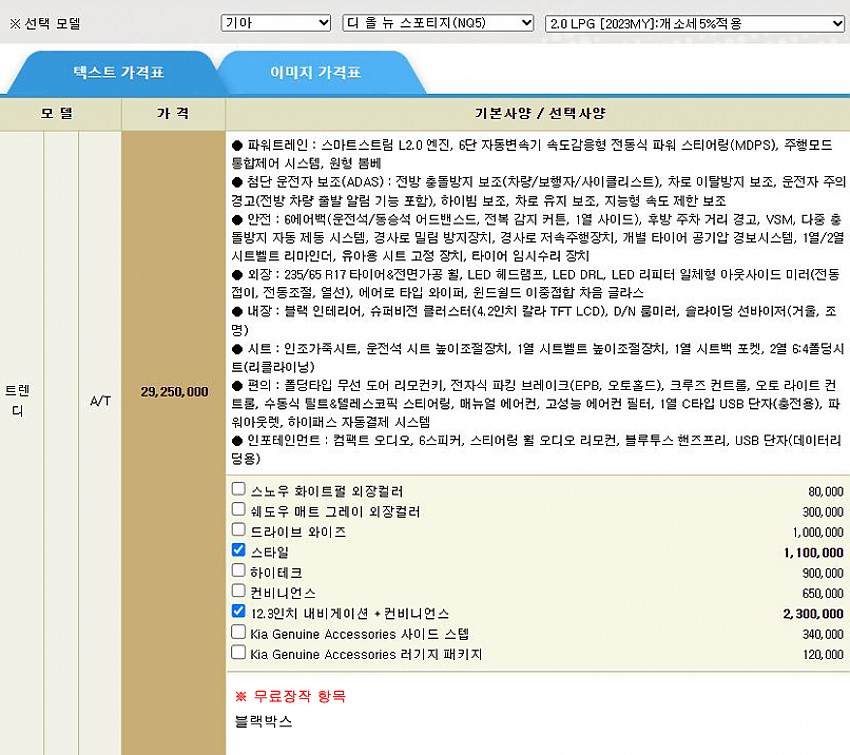 ▶ 차종 및 등급 : 디 올 뉴 스포티지 2.0 LPG_트렌디