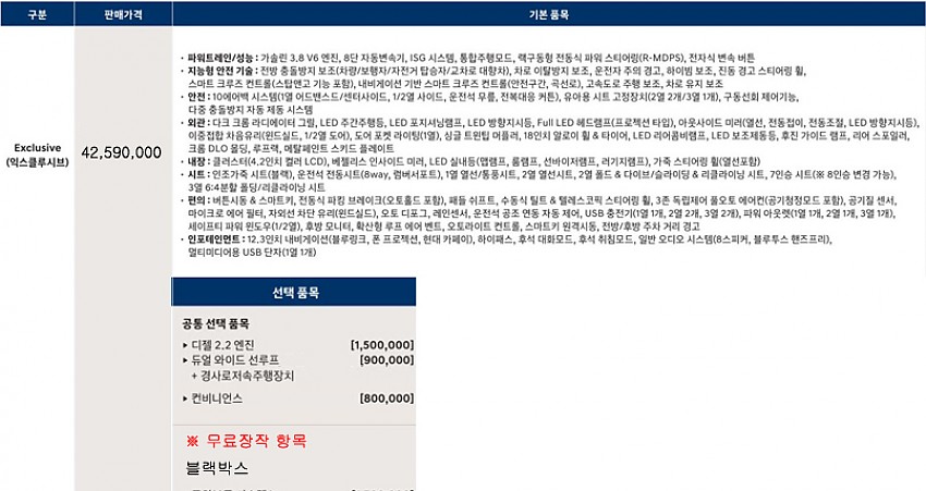 ※무상옵션 및 기본 장착 항목