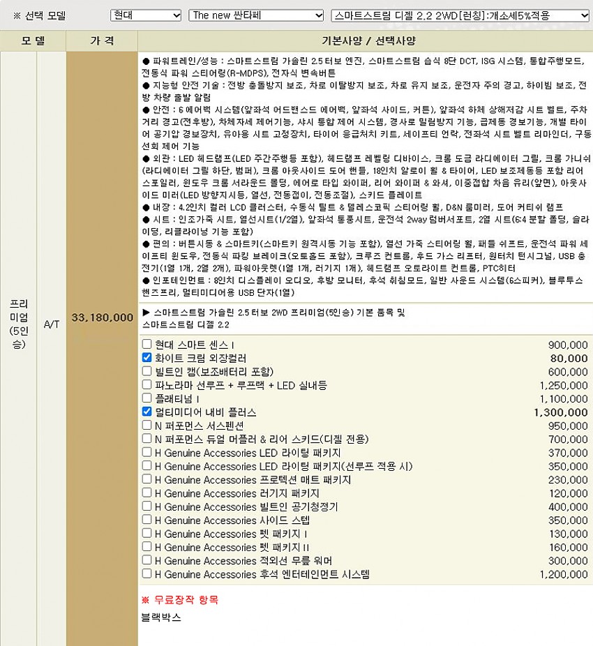 ▶ 차종 및 등급 : 현대 더 뉴 싼타페 TM / 2.2 디젤 2WD 프리미엄 5인승