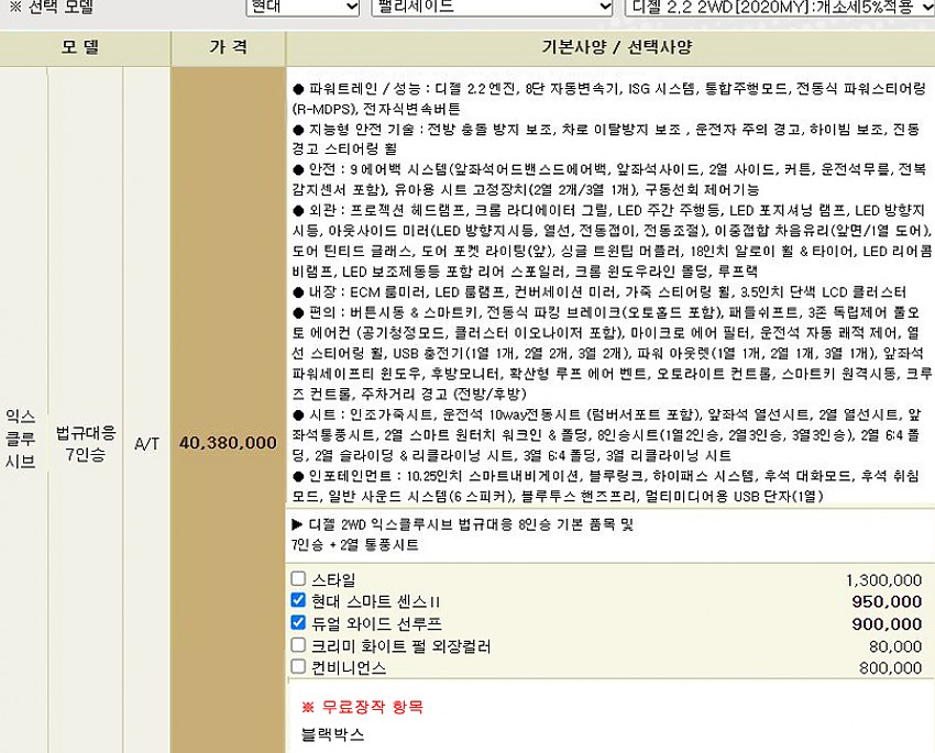 ▶ 차종 및 등급 : 현대 팰리세이드 2.2 디젤 2WD_7인승 / 익스클루시브