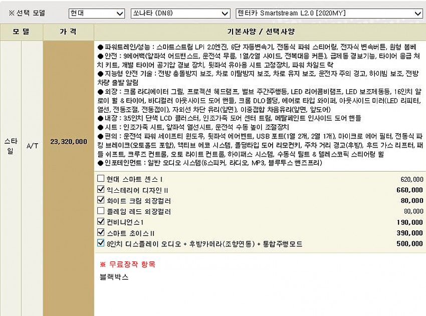 익스테리어 디자인|| + 컨비니언스1 등 / 블랙박스 (아래 옵션사항 참조)