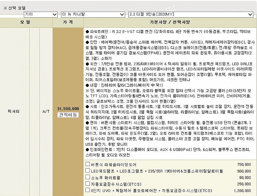 ▶ 차종 및 등급 : 기아 더 뉴 카니발 2.2 디젤 9인승 / 럭셔리_A/T