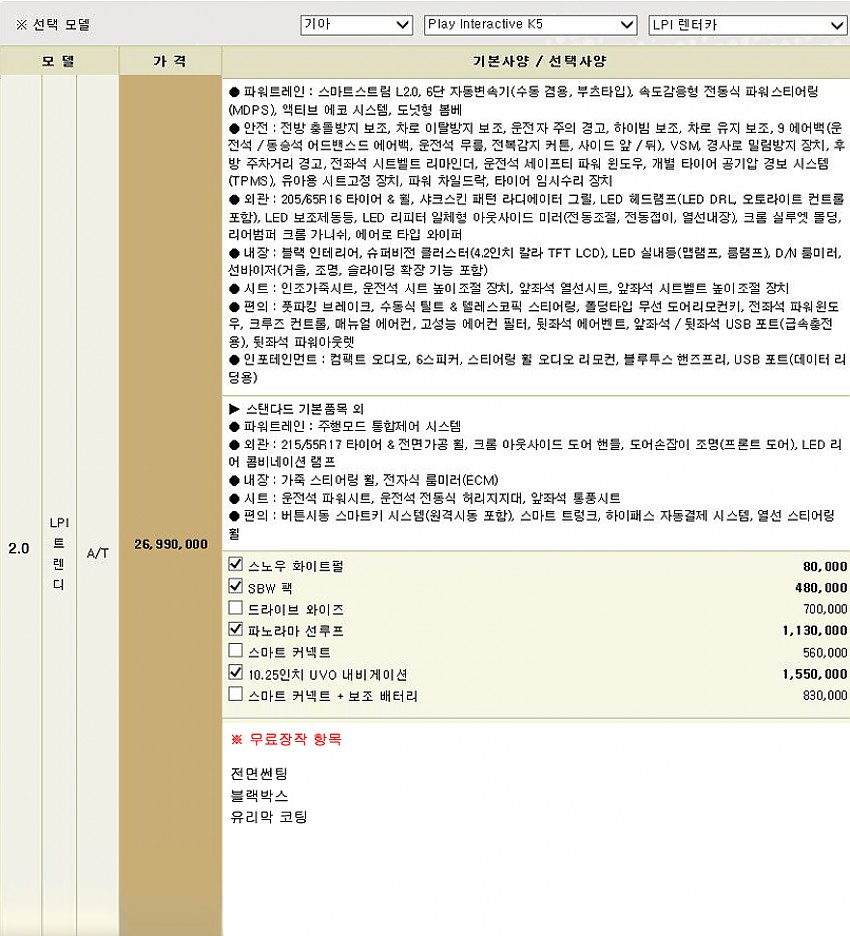 ▶ 차종 및 등급 : 기아 Play Interactive K5 2.0 LPI / 트렌디