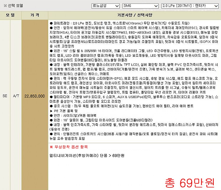 ▶ 차종 및 등급 : 르노삼성 SM6 LPe / SE 등급