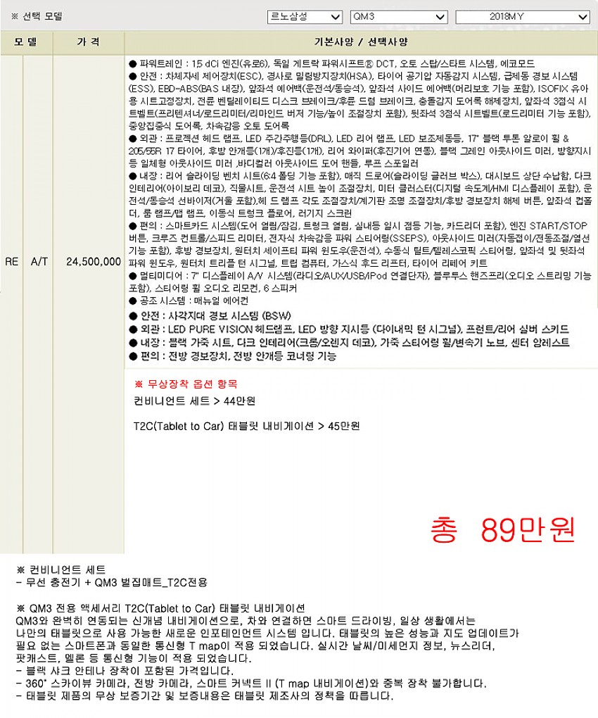▶ 차종 및 등급 : 르노삼성 QM3 디젤 / RE 18MY