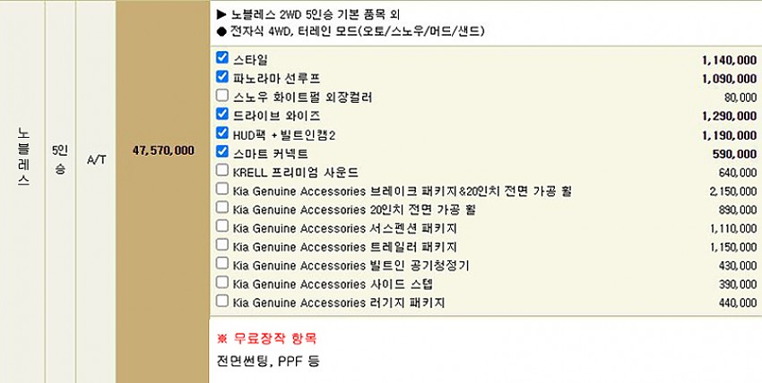 스타일 + 파노라마썬루프 등 / 전면썬팅 (아래 옵션사항 참조)