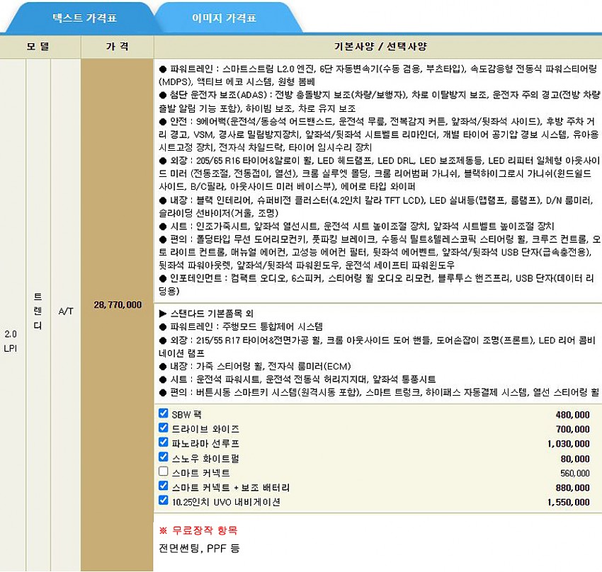 ※무상옵션 및 기본 장착 항목