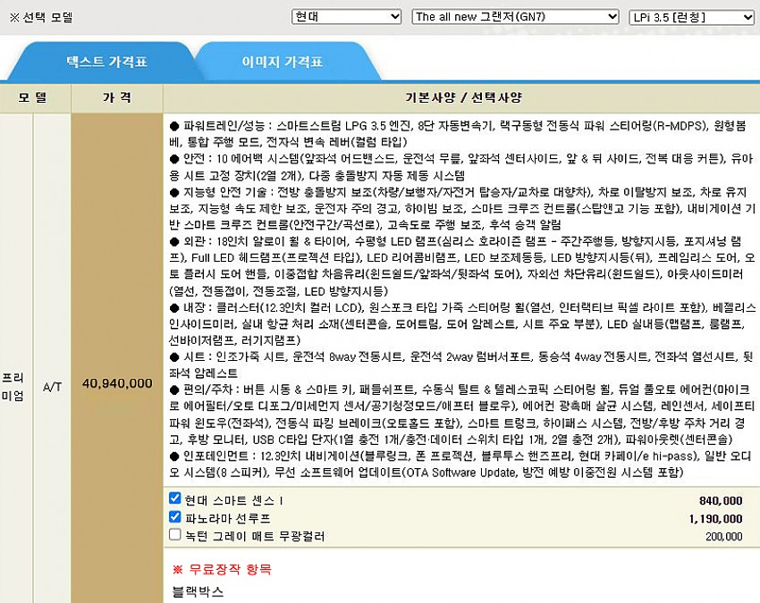 ▶ 차종 및 등급 : 더 올 뉴 그랜저_LPi 3.5 프리미엄