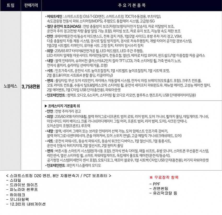 ※무상옵션 및 기본 장착 항목