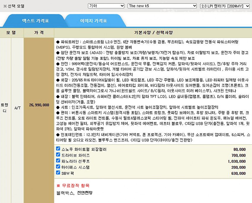 ▶ 차종 및 등급 : 더 뉴 K5 2.0 LPI 렌트카 트렌디 24MY