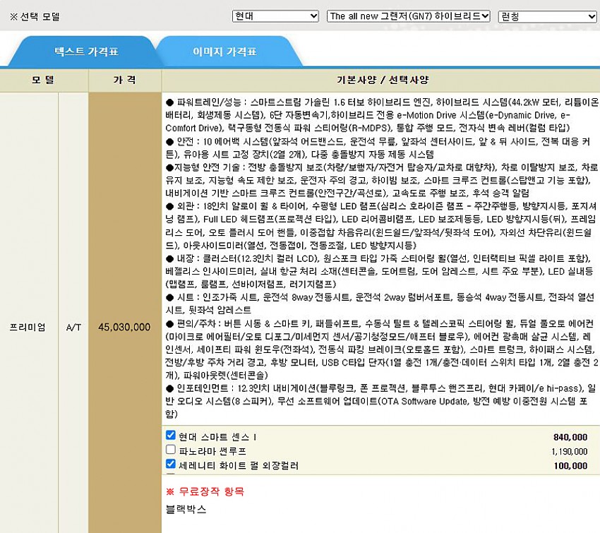▶ 차종 및 등급 : 더 올 뉴 그랜저 하이브리드_프리미엄