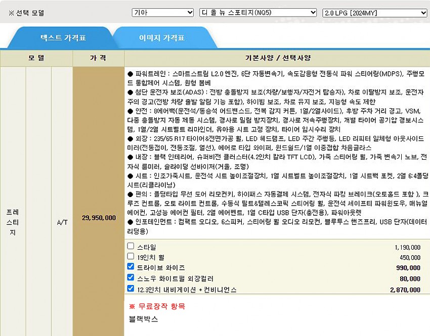 ▶ 차종 및 등급 : 디 올 뉴 스포티지_2.0 LPG_프레스티지 24MY