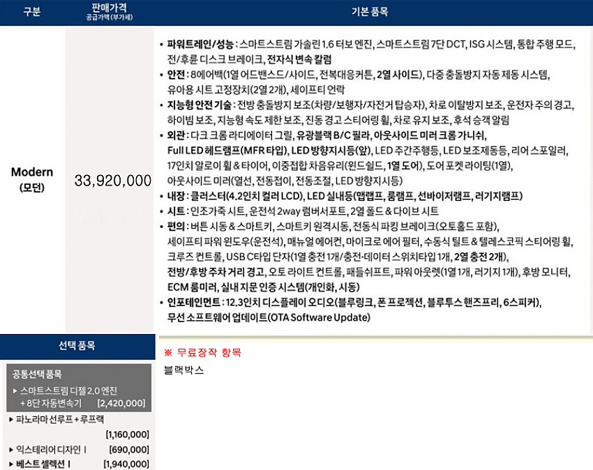 ※무상옵션 및 기본 장착 항목