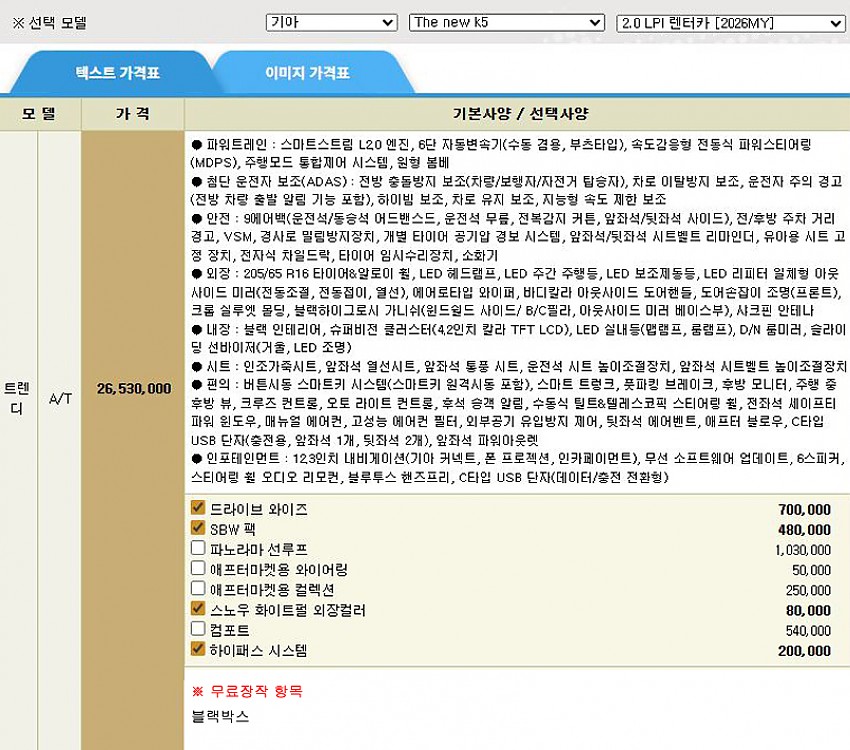 ▶ 차종 및 등급 : 더뉴 K5_2.0_LPI_렌터카_트렌디_26MY