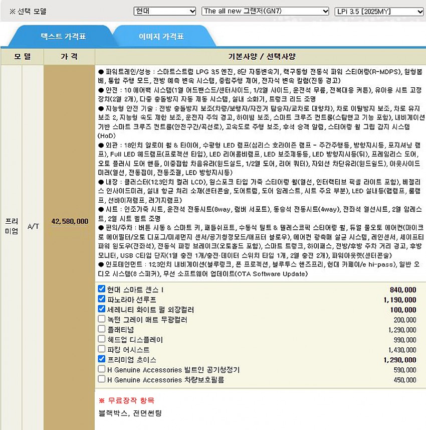 ▶ 차종 및 등급 : 현대 더 올 뉴 그랜저_LPi 3.5 프리미엄 ( 2025MY)