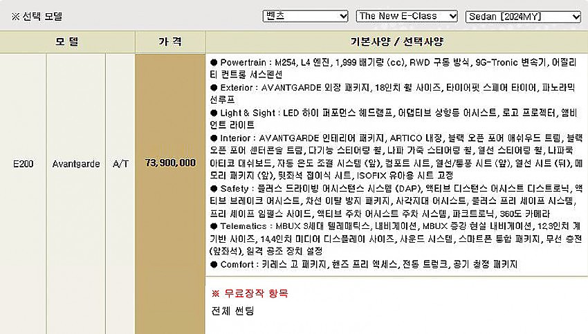 ▶ 차종 및 등급 : 더 뉴 E-Class_E200_Avantgarde 24MY
