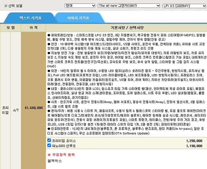 ▶ 차종 및 등급 : 그랜저 GN7_LPi 3.5_2WD_25MY