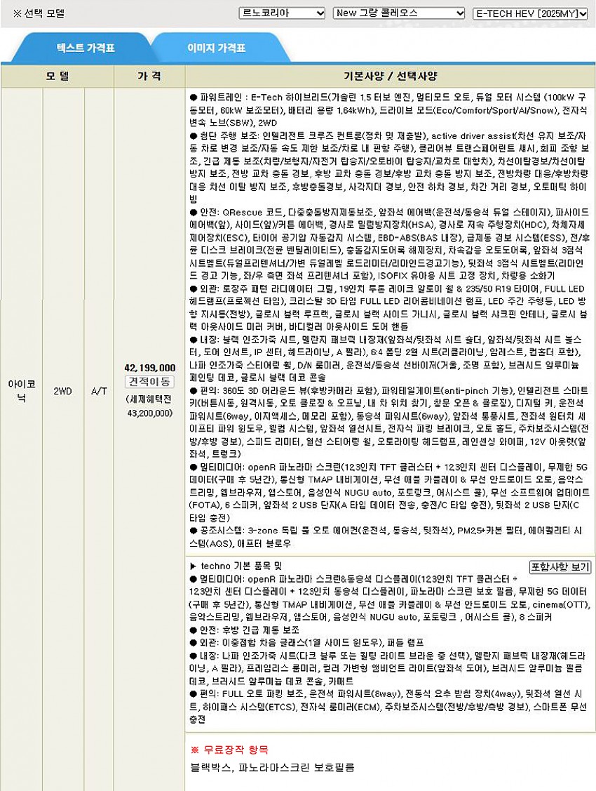 ▶ 차종 및 등급 : 그랑 콜레오스 E-Tech 하이브리드_아이코닉_25MY