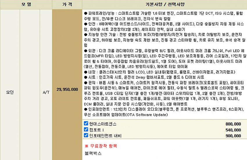 컴포트 등 / 블랙박스 (아래 옵션사항 참조)