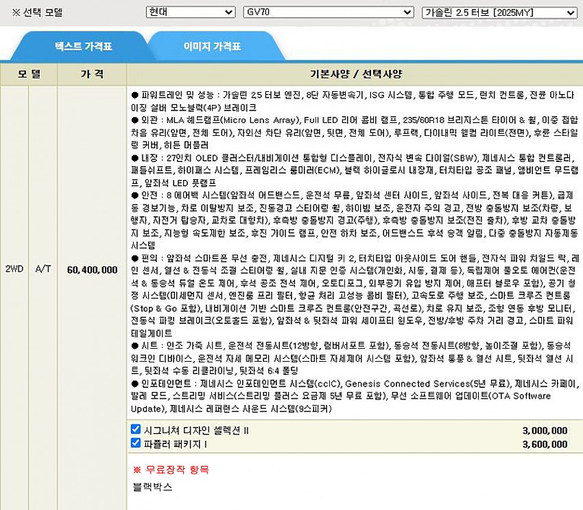 ▶ 차종 및 등급 : GV70_2.5T_가솔린_2WD_25MY