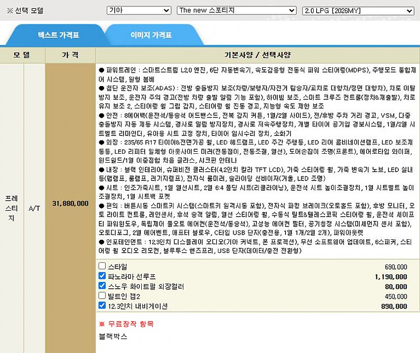 ▶ 차종 및 등급 : 기아 더뉴 스포티지 2.0_LPG_프레스티지_26MY